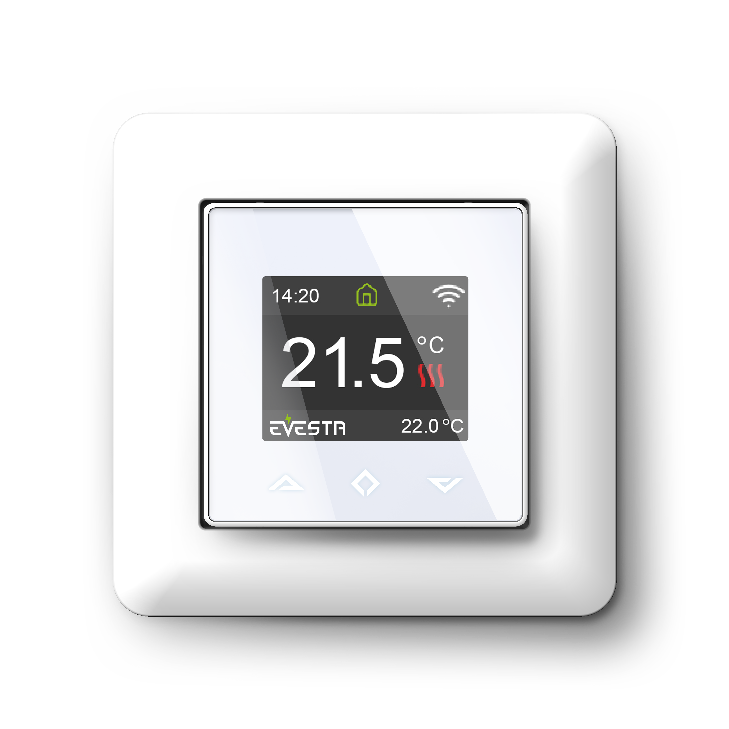 Evesta C on kehittynein älytermostaattimme lattia- ja huonelämmityksen säätöön. Termostaatin taustavalaistu 1,8” TFT-näyttö yhdessä kolmen painikkeen valikon kanssa tekee käytöstä helppoa ja intuitiivista – myös ilman puhelinsovellustakin. Evesta C:llä on mahdollista ohjata myös jäähdytystä, kuten muillakin Evesta-älytermostaateilla.